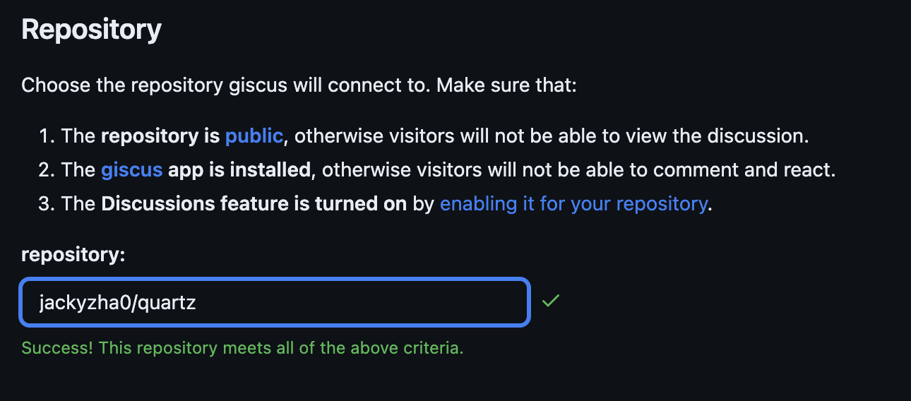 Quartz also exposes a few of the other Giscus options as well and you can provide them the same way repo
